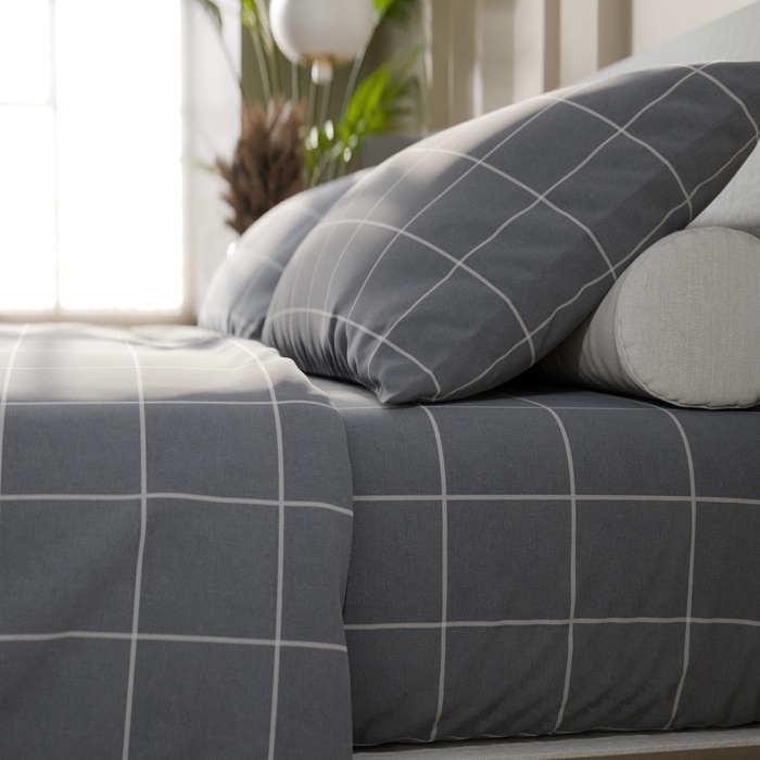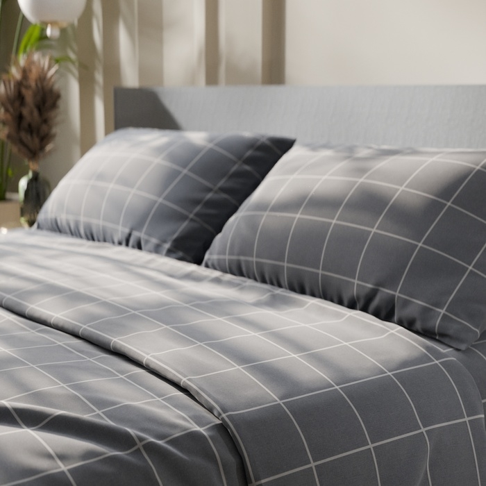 Постельное бельё Этель 2 сп "Клетка" цвет серый 175х215, 200х220, 50х70-2 шт, бязь, 125 г/м2