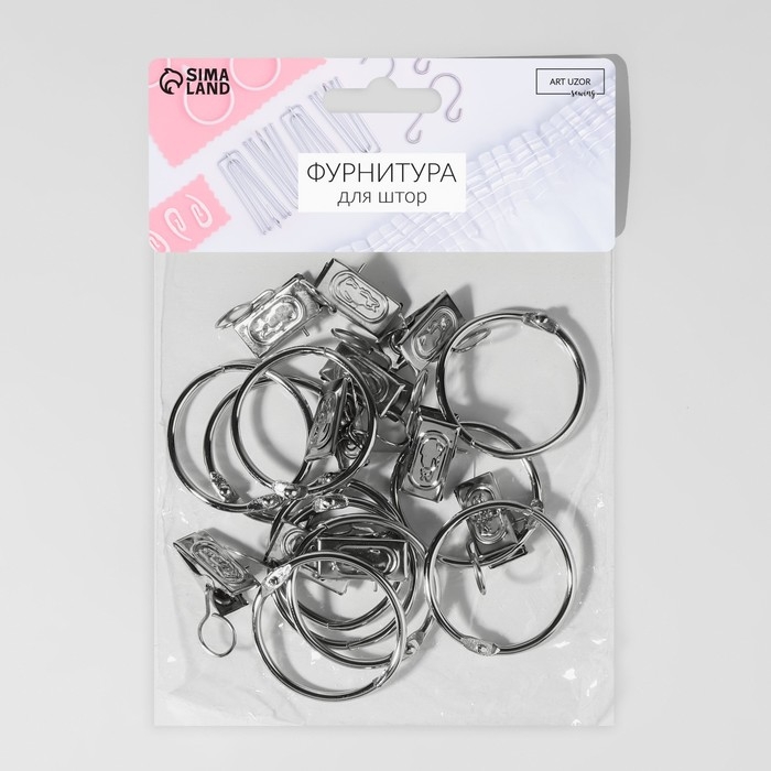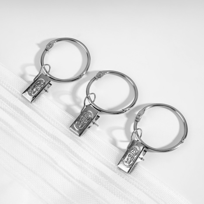 Набор для штор, кольцо разъёмное, d = 36/41 мм, 10 шт, зажим, 33 × 11 мм, 10 шт, цвет серебряный