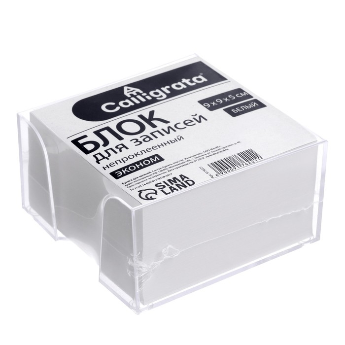 Блок бумаги д/записей 9*9*5 Calligrata белый 65г/м2 белиз 70-80%, в пласт прозр боксе