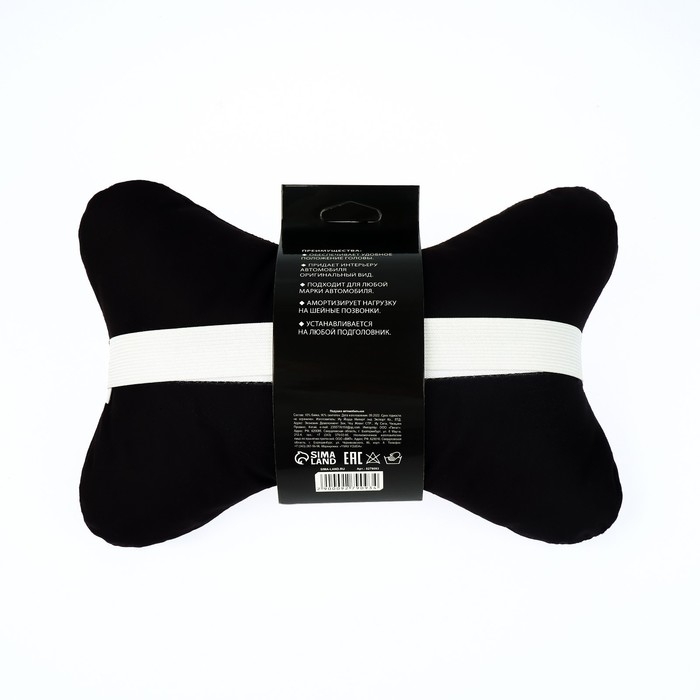 Подушка автомобильная косточка, на подголовник, экокожа, чёрный, 16х24 см