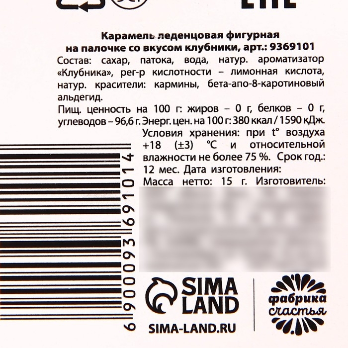 Состав: сахар, патока, вода, регулятор кислотности – лимонная кислота, натуральный ароматизатор «Клубника», натуральные красители: кармины, бета-апо-8-каротиновый альдегид.