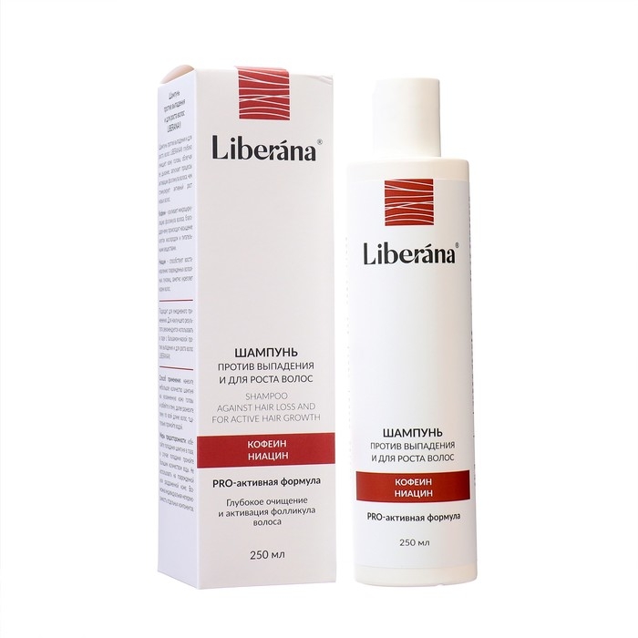 Шампунь против выпадения и для роста волос LIBERANA глубоко очищает кожу головы, облегчая ее дыхание, запускает процессы активации фолликула волоса, чем стимулирует активный рост новых волос. Кофеин – усиливает микроциркуляцию фолликула волоса, благодаря чему происходит насыщение клеток кислородом и питательными веществами.