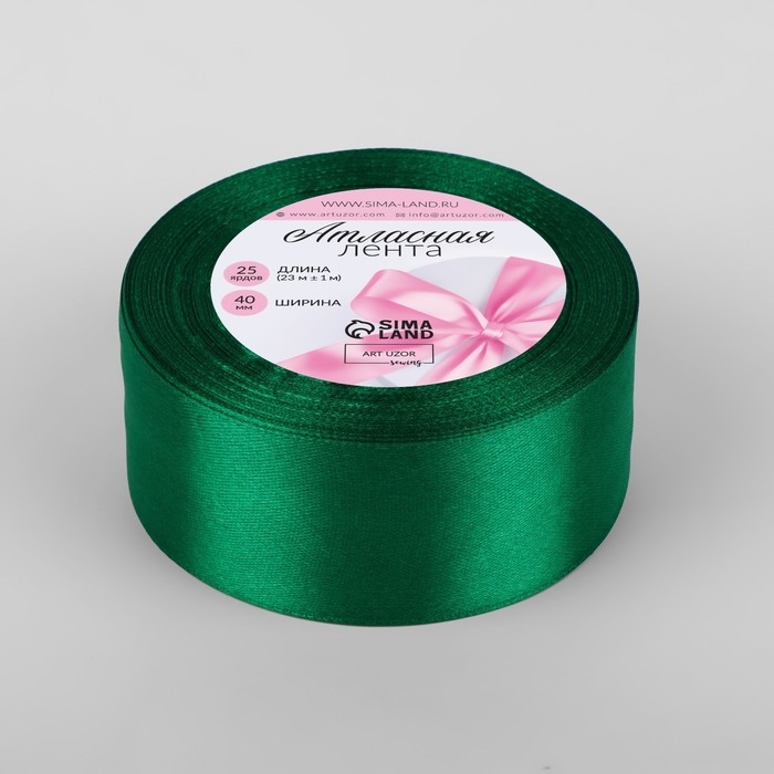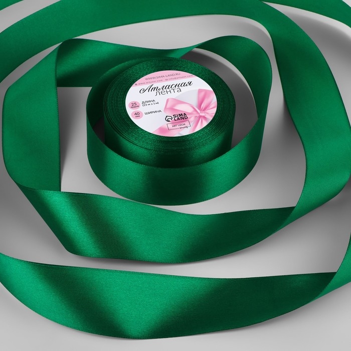 Лента атласная, 40 мм × 23 ± 1 м, цвет насыщенный зелёный №С1123