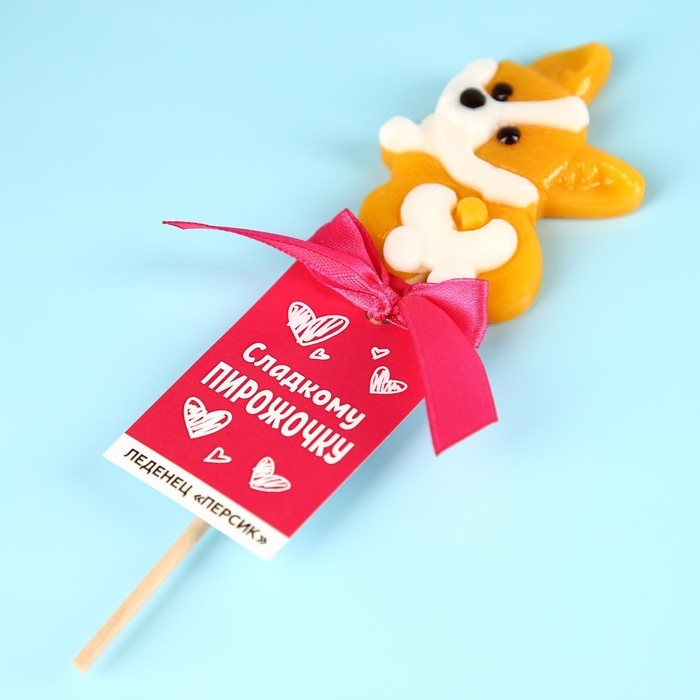 Леденец «Сладкому пирожочку» на палочке, со вкусом персика, 25 г.