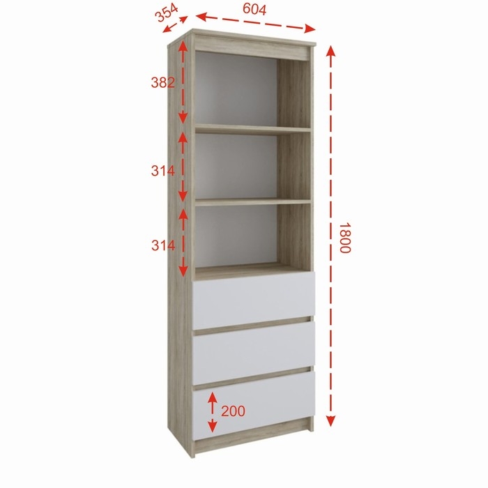 Стеллаж Мадера 604х370х1800 Дуб сонома/Белый