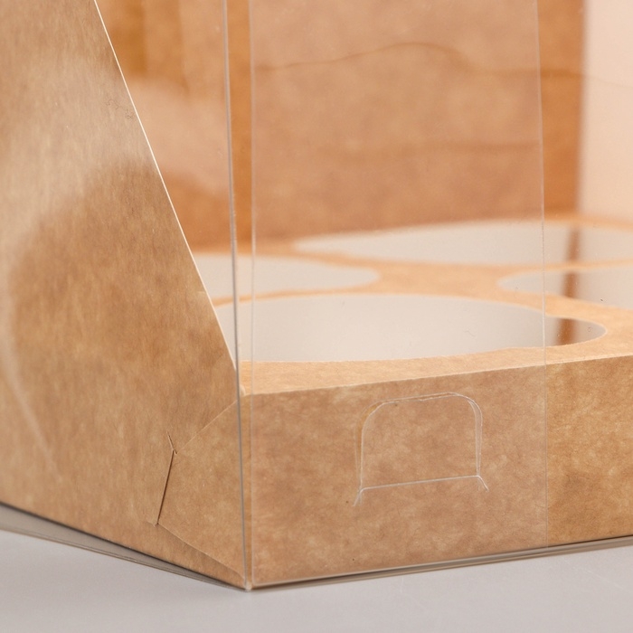 Коробка на 6 капкейков с окном, крафт, 25 х 17 х 10 см