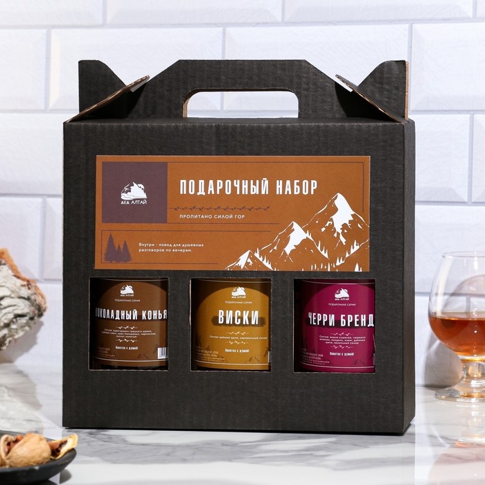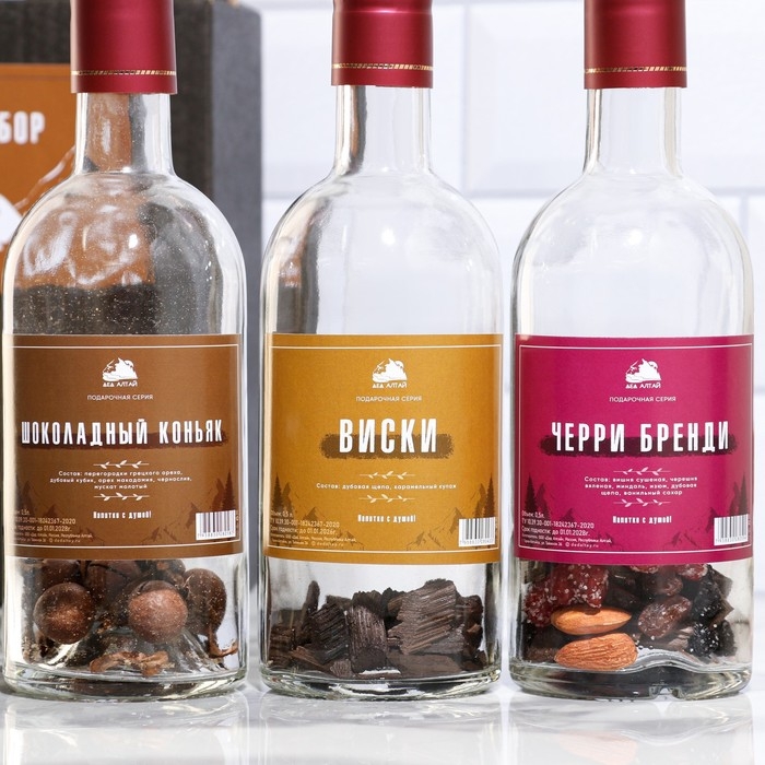 Подарочный набор бутылок по 0.5 литр"КОНЬЯЧНАЯ СЕРИЯ №1" (Шоколад коньяк, виски, черри бренди) 95191