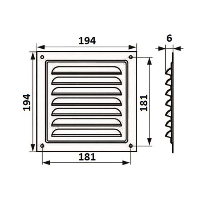 Решетка вентиляционная "КосмоВент" Л150, 150 х 150 мм, с сеткой, неразъемная