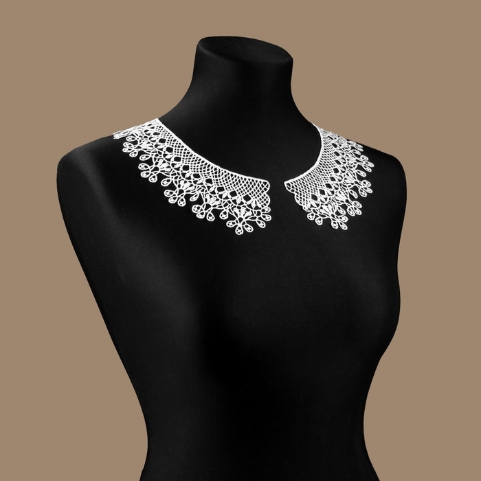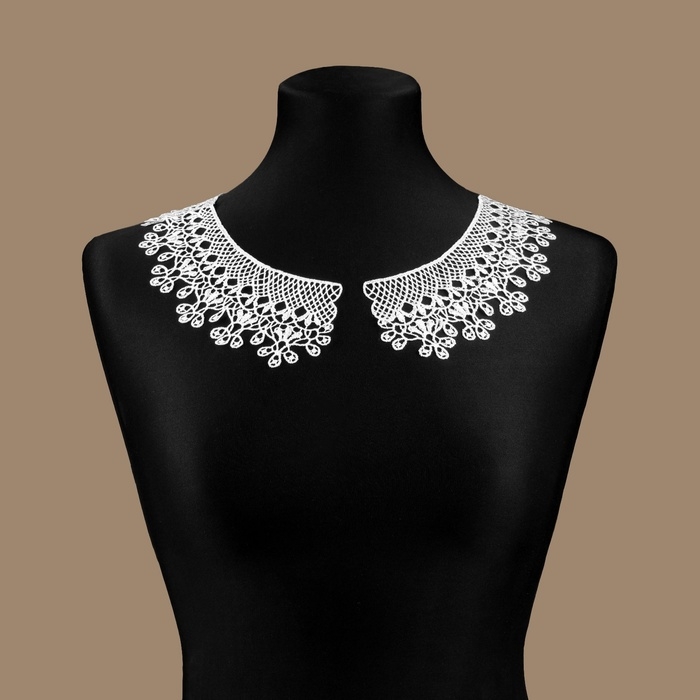 Накладной воротник идеально подойдёт для тех, кто любит разнообразить свой образ акцентной деталью. Изделие можно закрепить на одежде пришивным методом. Ажурный дизайн станет прекрасным дополнением к кофточке или платью.