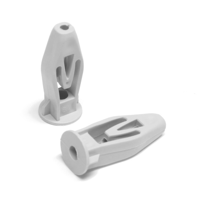 Конструкция имеет две части – распорную внутри и корпус в статическом положении. При установке распорная часть оказывается в отверстии путем расширения, создавая прочное соединение.