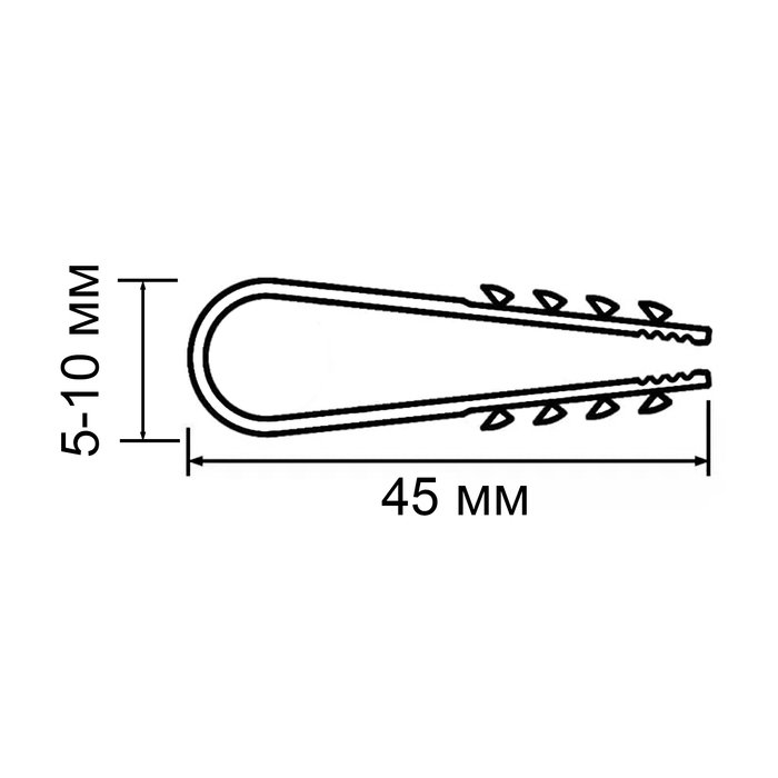 Дюбель-хомут "ТУНДРА" предназначен для крепления проводов, пучков проводов, гибких и жестких труб к бетону, природному камню, полнотелому кирпичу и пенобетону.