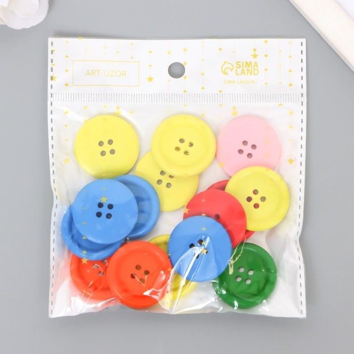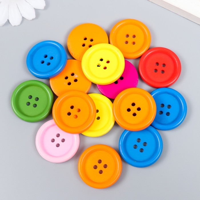 Пуговицы дерево для творчества 4 прокола "Простые" набор 15 шт 3х3 см