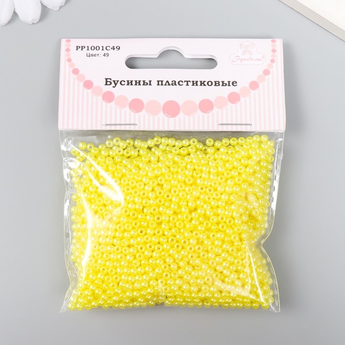 Набор бусин "Рукоделие" пластик, диаметр 3 мм, 25 гр, желтый