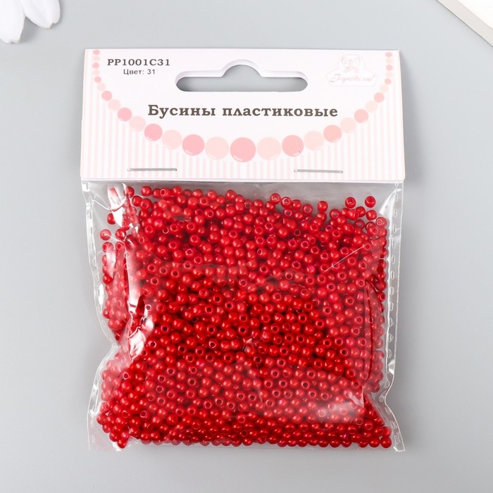 Набор бусин "Рукоделие" пластик, диаметр 3 мм, 25 гр, алый