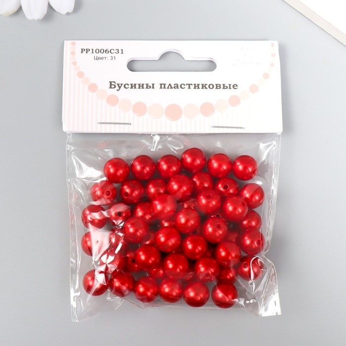 Набор бусин "Рукоделие" пластик, диаметр 10 мм, 25 гр, алый