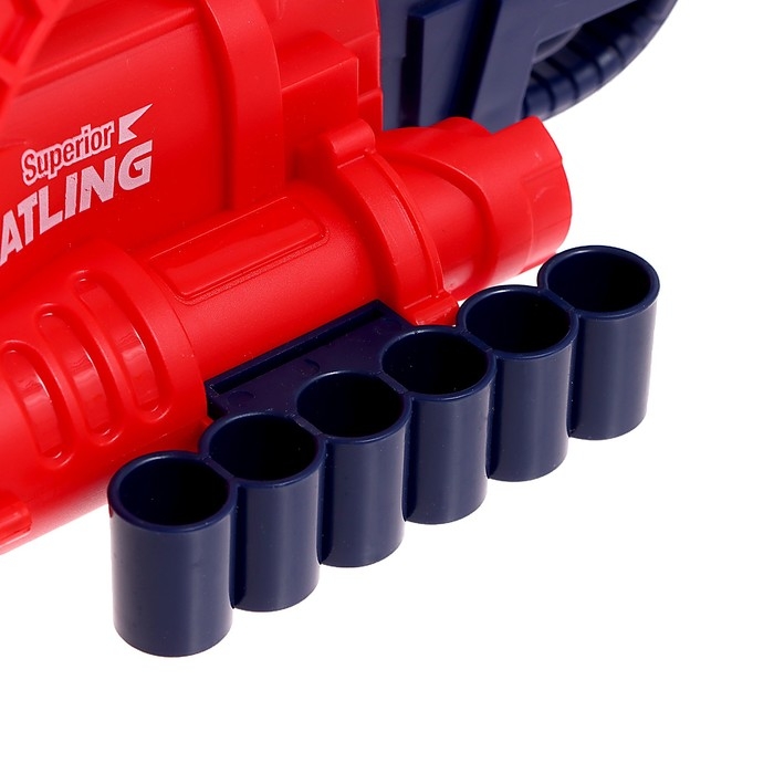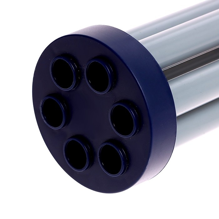- Оружие имеет ручной механизм запуска пуль при нажатии кнопки на рукоятке.