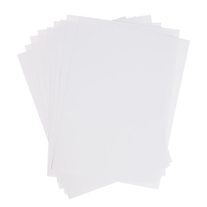 Белый картон мелованный односторонний формата А4 (203х280 мм). В папке 10 листов. Плотность наполнения — 170 г/м2. Папка из плотного картона. Упакован в термоусадочную пленку по 5 штук.