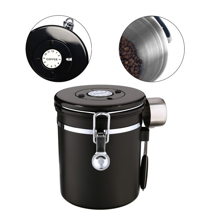 Герметичный контейнер для хранения молотого кофе и кофейных зерен, 1.5 л, 15 х12 см, черный
