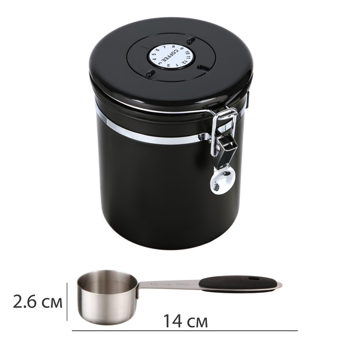 - Благодаря герметичной крышке с силиконовым уплотнителем, плотно закрывающейся на удобный эксцентриковый зажим, кофе и другие сыпучие продукты не испортятся раньше срока.
