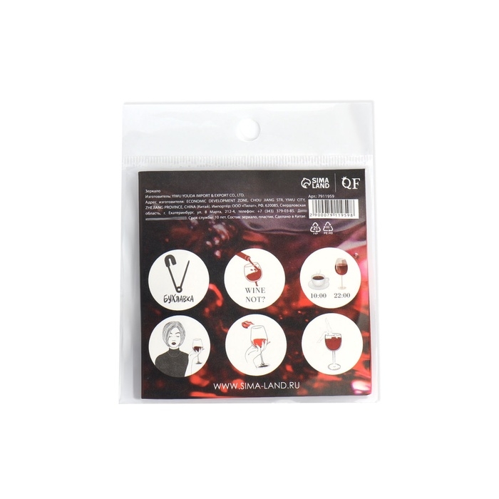 Зеркало карманное «WINE NOT», d = 7,5 см, рисунок МИКС