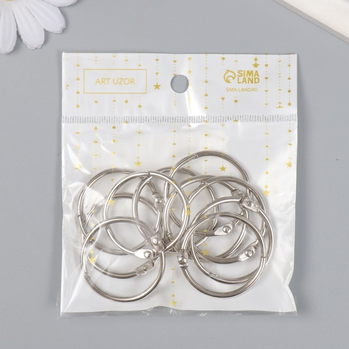 Кольца для творчества для фотоальбомов "Серебро" внутр. d= 3 см внешн. d=3,4 см набор 10 шт