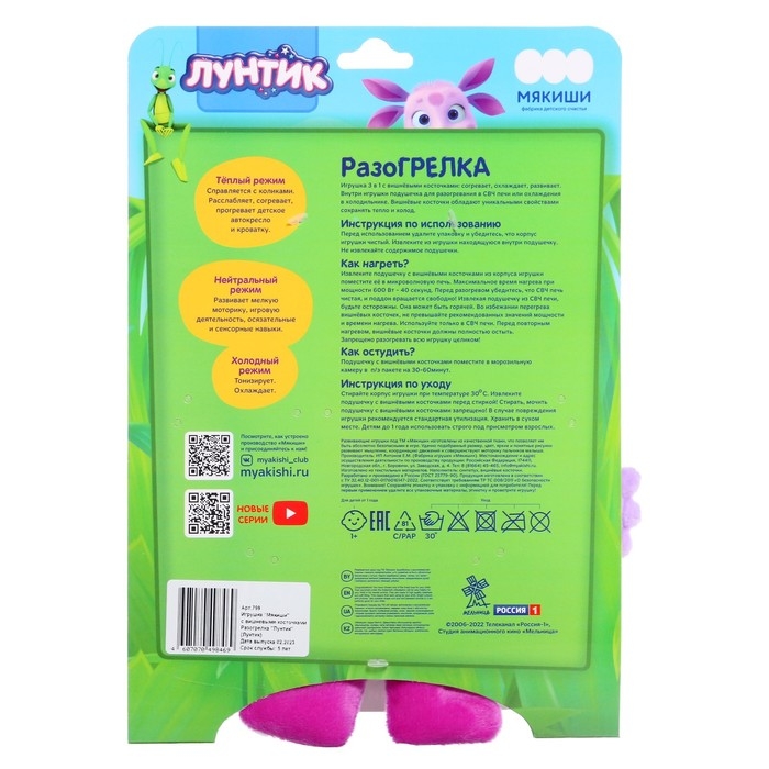 Развивающая игрушка-грелка «Лунтик», с вишневыми косточками, 26 см