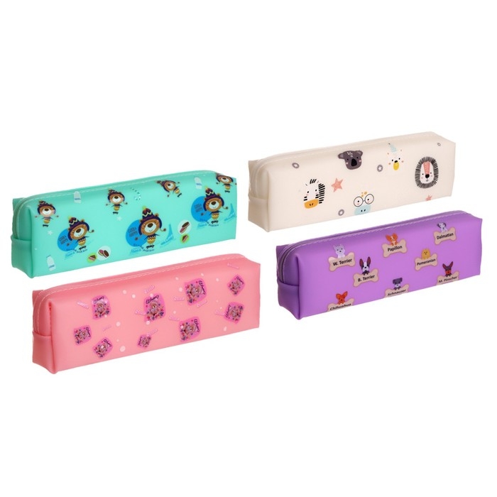 Пенал школьный на молнии "Зверушки", МИКС