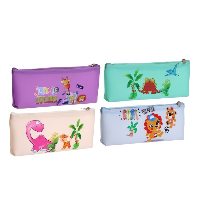 Пенал школьный на молнии "Зверушки", МИКС