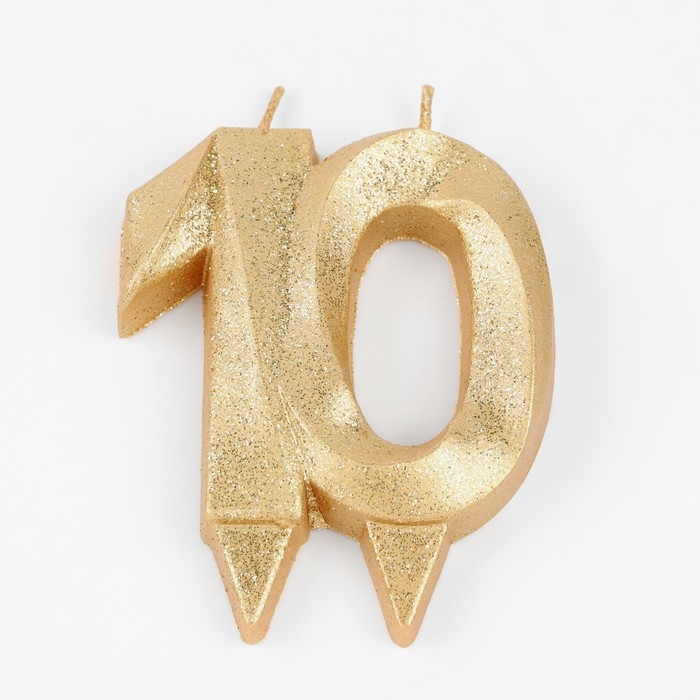 Свеча для торта юбилейная "Грань", цифра 10, золотой блеск, 8см