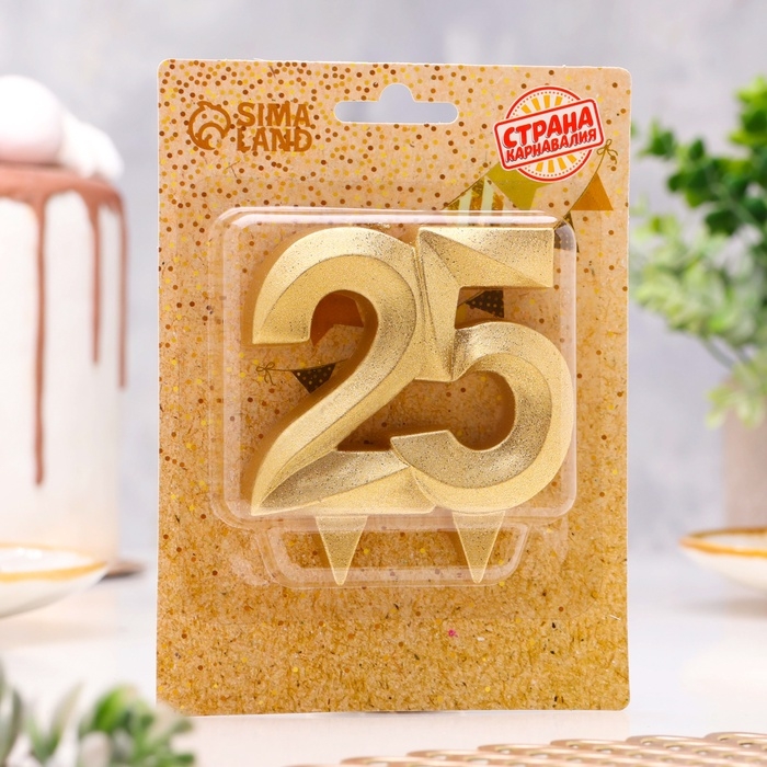 Свеча для торта юбилейная "Грань", цифра 25, золотой блеск, 8см