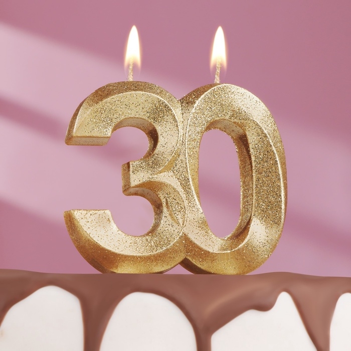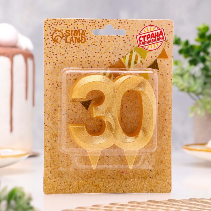 Свеча для торта юбилейная "Грань", цифра 30, золотой блеск, 8см