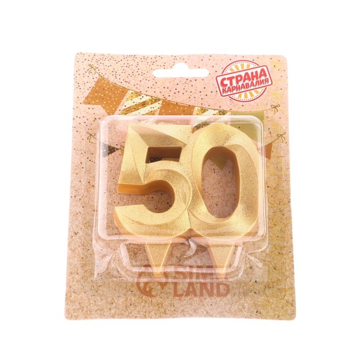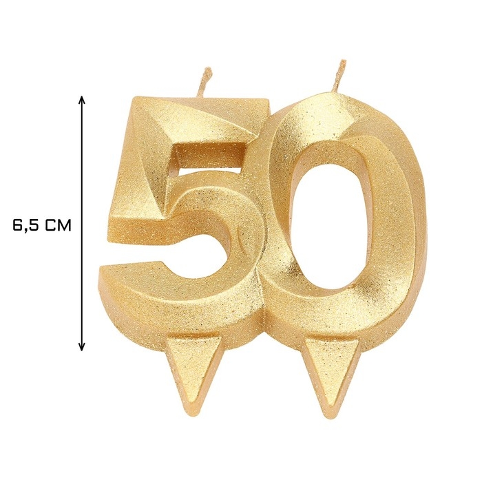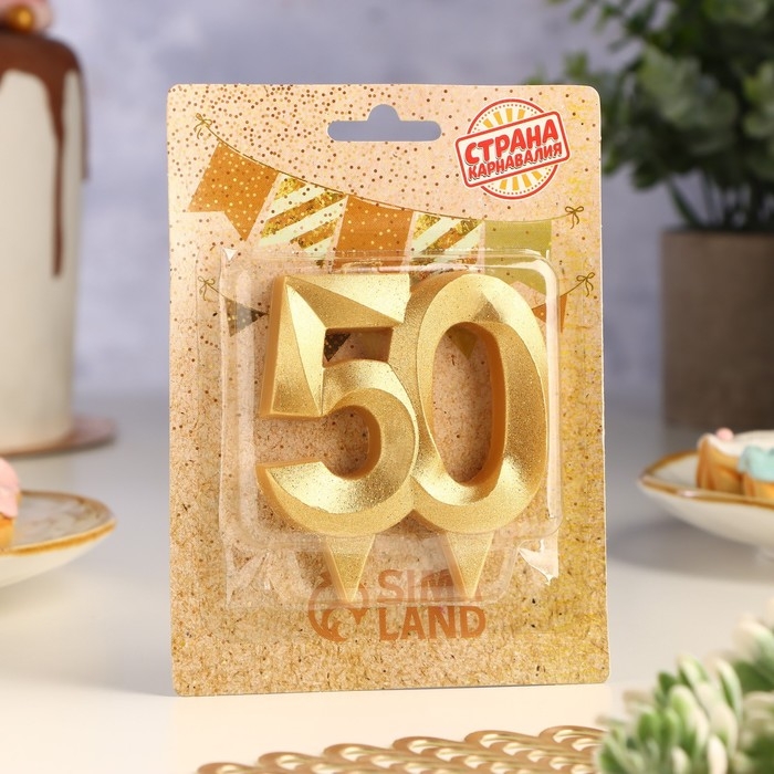 Свеча для торта юбилейная "Грань", цифра 50, золотой блеск, 8см