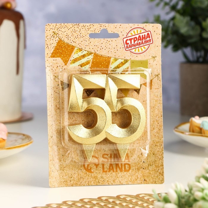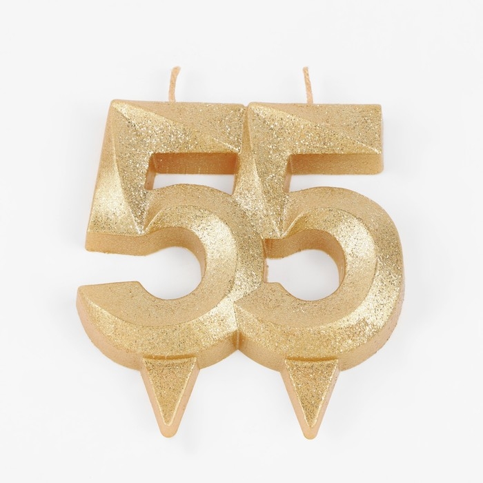 Свеча для торта юбилейная "Грань", цифра 55, золотой блеск, 8см