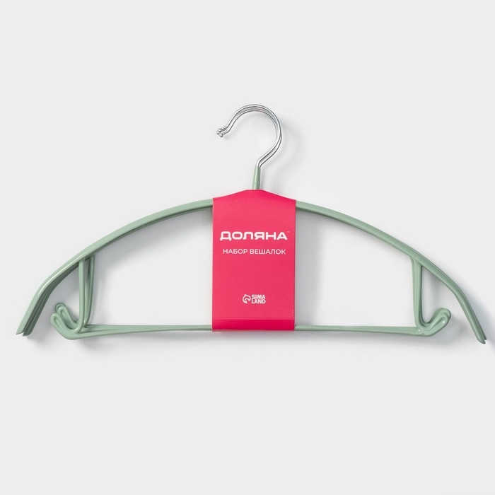 Плечики - вешалки для одежды Доляна «Мята», 42×20 см, 3 шт, антискользящее покрытие, цвет зелёный