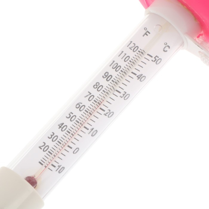 Термометр поможет измерить температуры воды в бассейне или в ванной. Для удобства устройство измеряет температуру в градусах Цельсия (°C) и Фаренгейта (°F). Диапазон температур от 0 до 50°С (от 30 до 120°F). Термометр в виде поплавка не будет мешать во время купания. Сверху прикреплен резиновый фламинго, - яркий компаньон для ребенка во время купания.