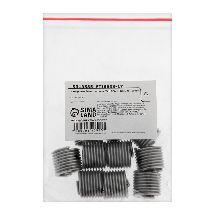Набор резьбовых вставок ТУНДРА, М12х1.75, 10 шт.
