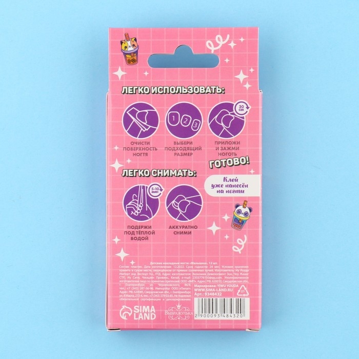 Детские накладные ногти «Сладкий стиль», 12 шт