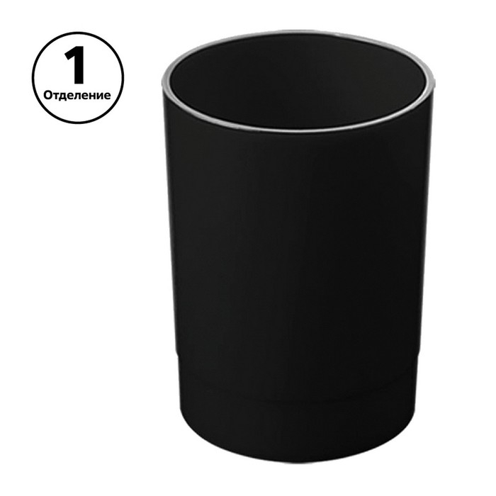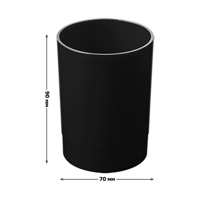 Подставка-стакан для канцелярии Стамм "Лидер", пластик, 70 х 90 мм, круглая, черный