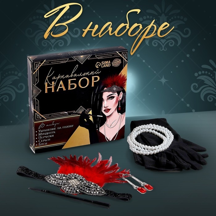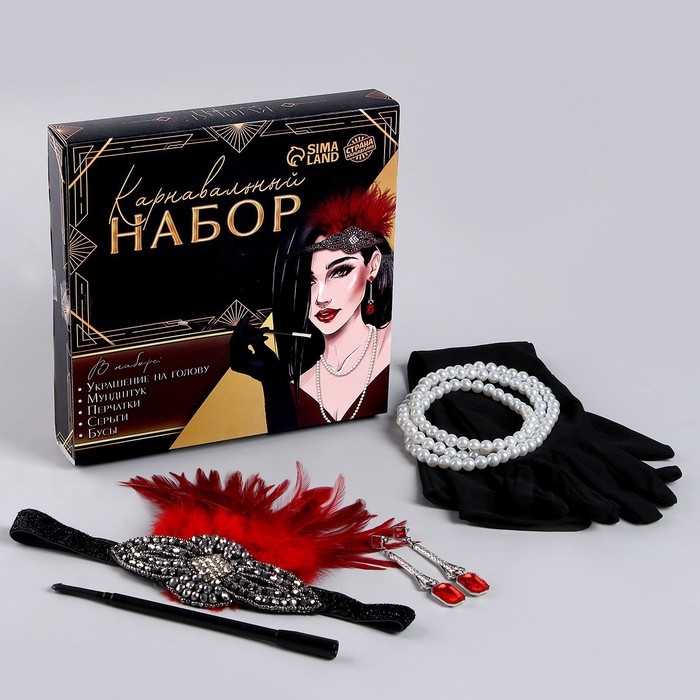 Новогодний карнавальный набор — это отличный способ дополнить праздничный образ и создать атмосферу ретро-стиля. Эти аксессуары помогут вам почувствовать себя настоящей леди из эпохи гламурного кино, добавив нотку изысканности в наряд.
