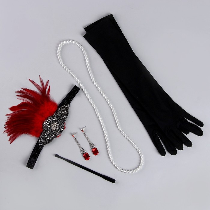 Карнавальный набор «Леди»: повязка, перчатки, серьги, бусы, мундштук