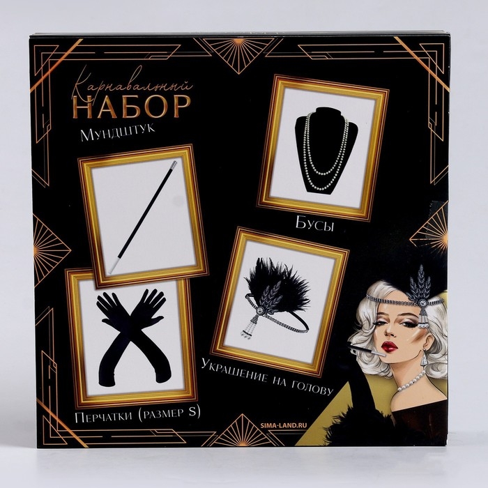 Создайте атмосферу ретро-шика на своем новогоднем празднике с карнавальным набором. Он поможет легко перевоплотиться в образ светской дамы, добавляя нотки элегантности и стиля в ваше торжество.