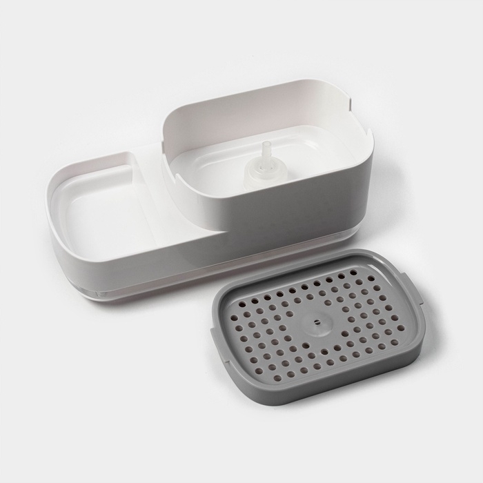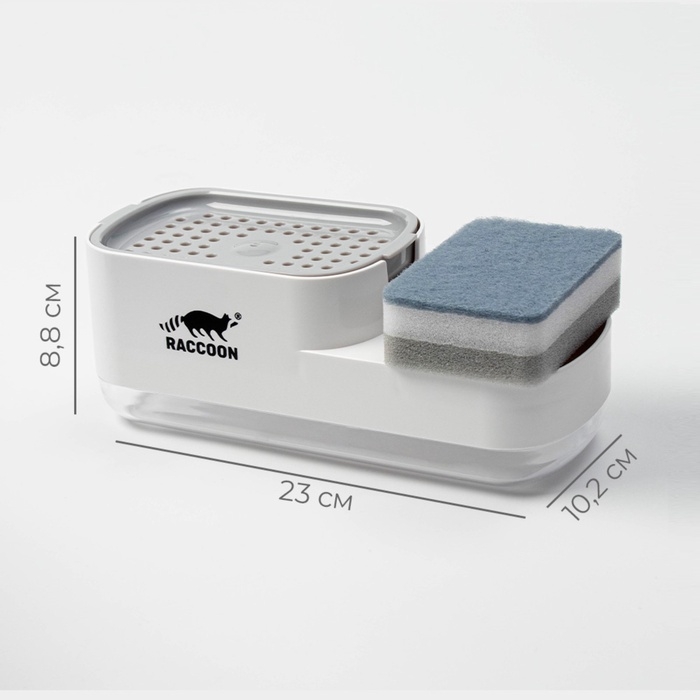 Дозатор для моющего средства с подставкой для губки Raccoon, 550 мл, губка в комплекте, цвет белый