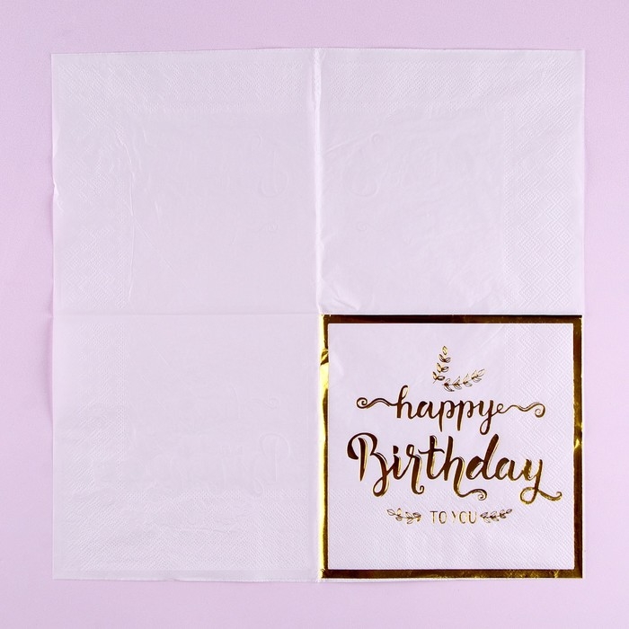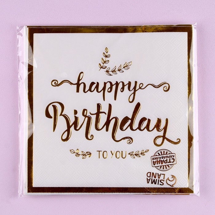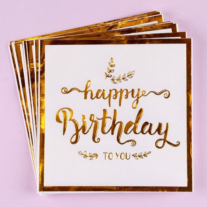 Салфетки бумажные «С днём рождения», 33 × 33 см, в набор 12 штук, цвет золотой