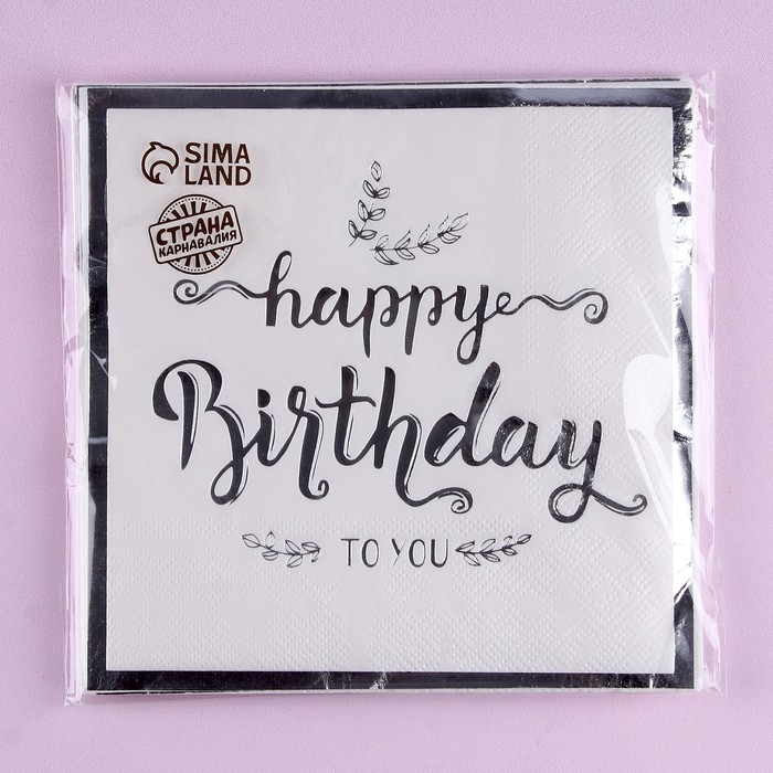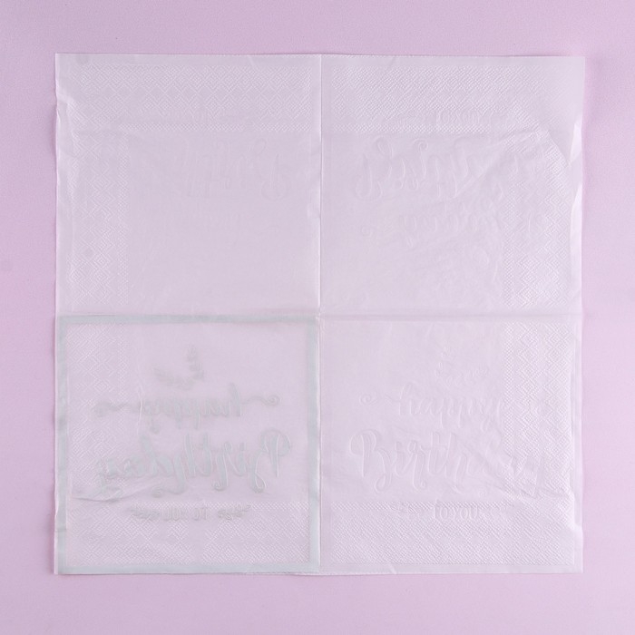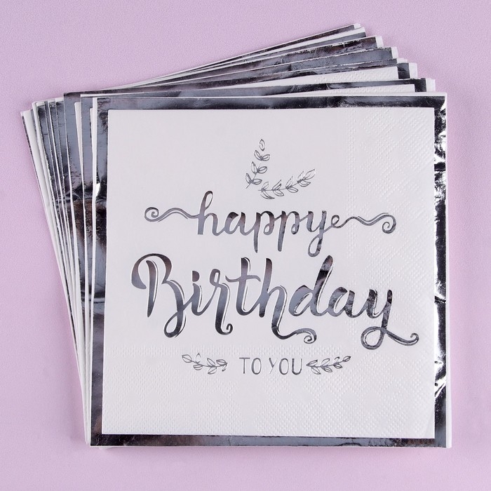 Салфетки бумажные «С днём рождения», 33 × 33 см, в наборе 12 штук, цвет серебро