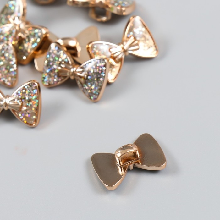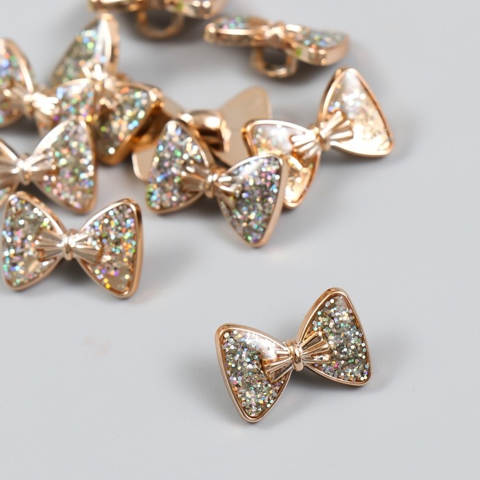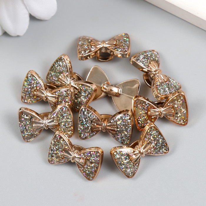 Пуговицы пластик для творчества на ножке "Бантик с блёстками" набор 10 шт 1,8х1,3 см