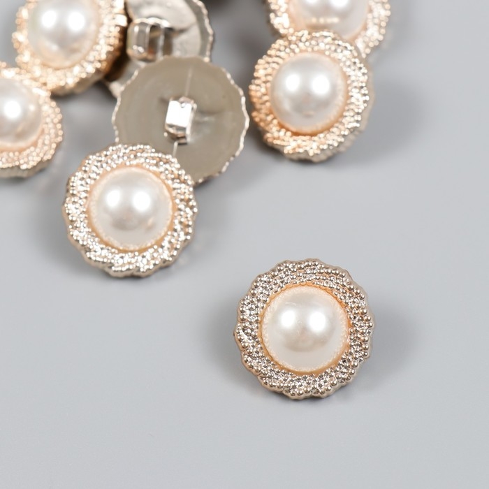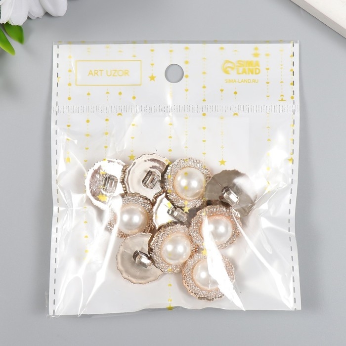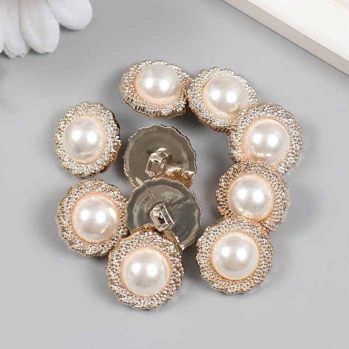 Пуговицы пластик для творчества на ножке "Жемчужина в оправе" набор 10 шт 2,1х2,1 см
