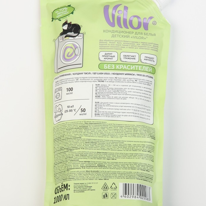 Кондиционер Vilor «Детский» для изделий из ткани придаст вашим вещам мягкость и сделает их приятными на ощупь. Средство обладает антистатическим эффектом, облегчает глажку белья, освежает краски цветных изделий и способствует сохранению формы одежды. После стирки ваша одежда будет окутана приятным, изысканным ароматом, который останется на долгое время. Кроме того, кондиционер ускоряет процесс сушки белья и подходит как для ручной, так и для машинной стирки.