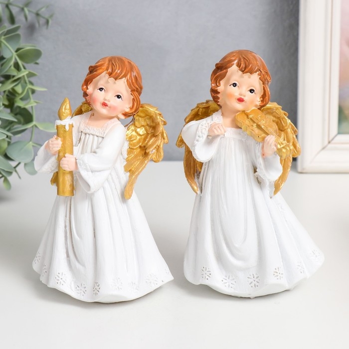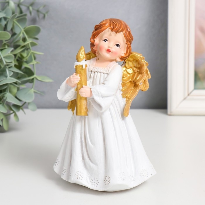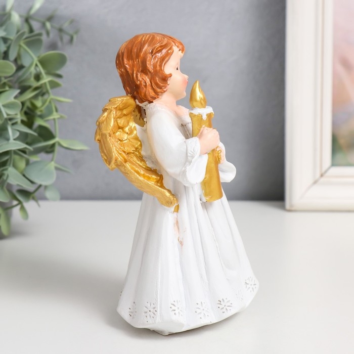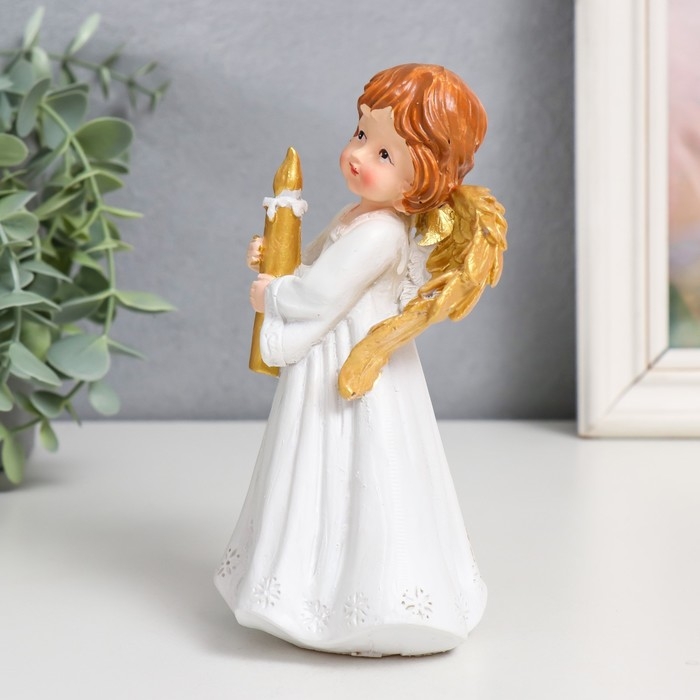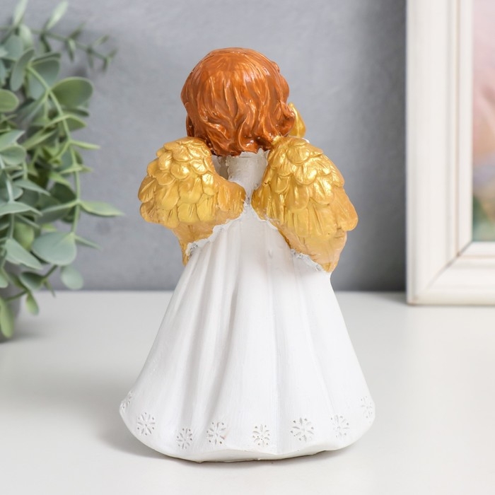 Сувенир полистоун "Праздничный ангел в белом платье" золотые крылья МИКС 9,5х7х15 см