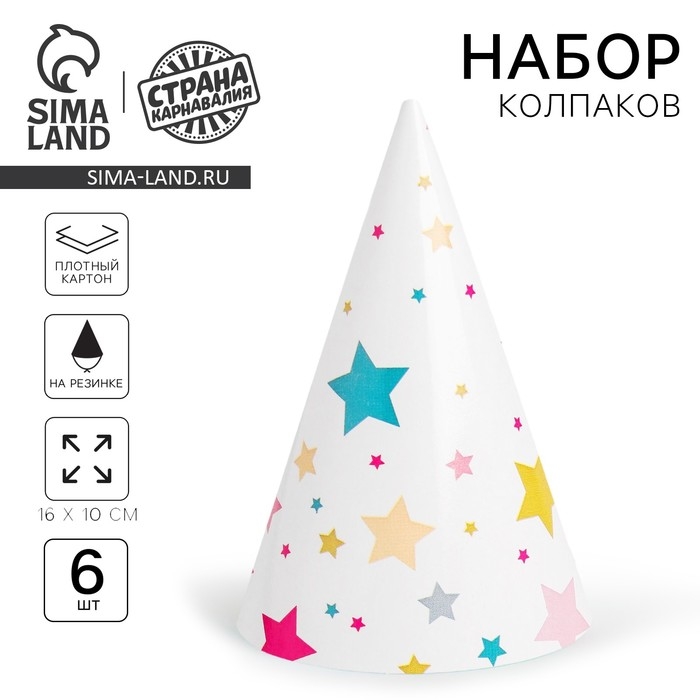 Колпак бумажный «Звёзды», в наборе 6 шт.