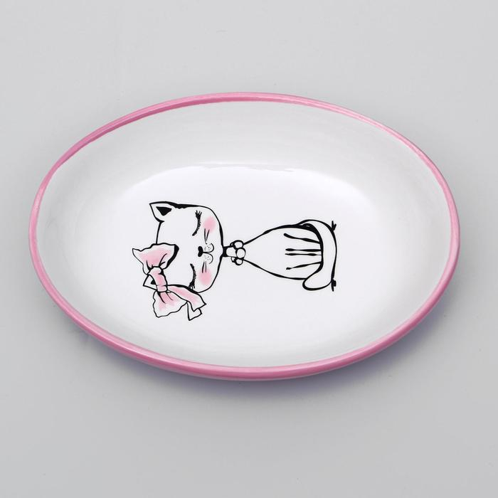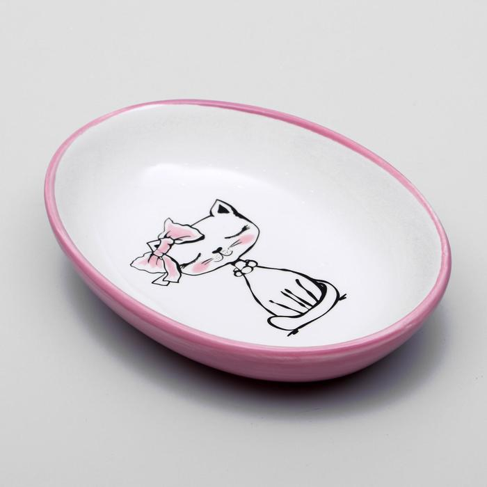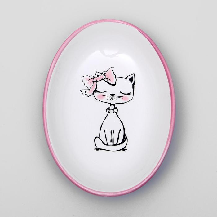 Блюдце керамическое "Милая киса" 200 мл 15,7 х 11,3 х 3,8 см, розовая